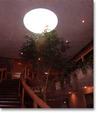 Skylights may also be used to advantage in building entrances to enhance foyers or spotlight attractive features such as sculptures, murals, paintings, planters, reflecting pools, etc. A whole room roofed over with skylighting can add greatly to the atmosphere of a garden court or restaurant.