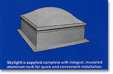 ARC-O-LITE Insulated curb, double dome pre-assembled plastic skylights manufactured by Architectural Plastics Limited, Mississauga, Ont.; of size and type as per Model No. _______, complete with clear outer dome [clear] [white translucent] inner dome, 299mm (") high and 50mm (2") wide 6063-T5 extruded aluminum curb filled with rigid insulation.